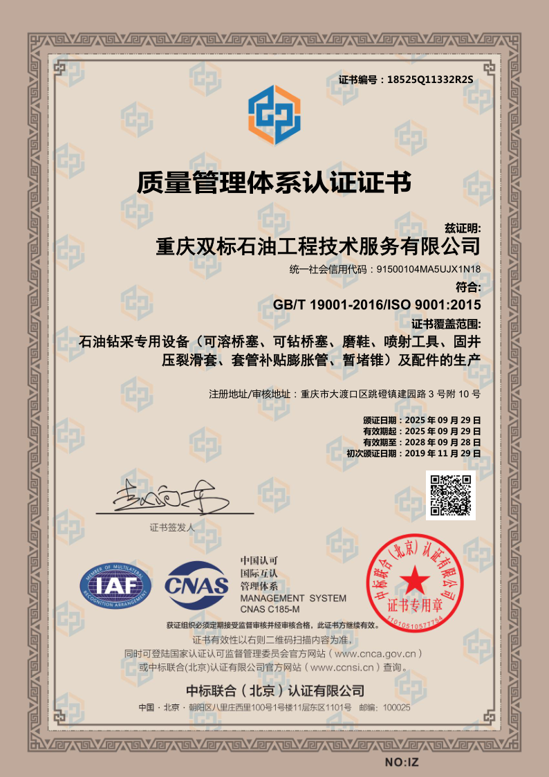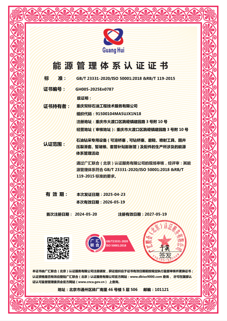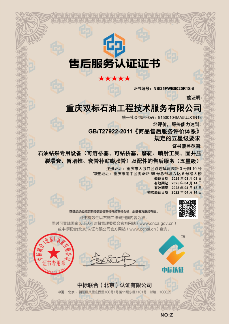 2017年5月,重庆双标石油工程技术服务有限公司正式成立,并在大渡口区建风路9号16号厂房2楼开始研发和生产,标志着公司在石油工程技术服务领域迈出了重要一步。